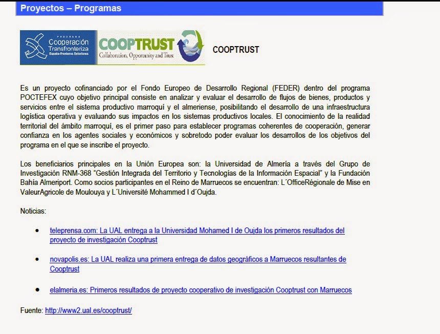 mar202015noticias Newsletter IDE Iberoamérica Enero 2015 Volumen 11 Nº 1 Categoría: noticias%d 20UTC %B 20UTC %Y Autor: cooptrust Navegación entre publicacionesAnteriorPublicación anterior:Boletín O.C.T.A.: PROYECTO COOPTRUSTSiguientePublicación siguiente:XXV International Conference on Graphic EngineeringRelated PostsCurso: MEJORA DE LA CAPACIDAD DEINNOVACIÓN Y DESARROLLO TECNOLÓGICO A TRAVÉS DE LA IMPLANTACIÓN DESISTEMAS CAD (COMPUTER AIDED DESIGN)29/06/2015XXV International Conference on Graphic Engineering22/03/2015Boletín O.C.T.A.: PROYECTO COOPTRUST20/03/2015saberuniversidad.es: «Marruecos es una oportunidad, no una amenaza»16/03/2015Fotos de la Conferencia: “El futuro de la agricultura en el noreste de Marruecos” Presentada por el Doctor Mourad Baghour el pasado viernes 06 de Marzo de 201510/03/2015Ya está disponible nuestra Newsletter nº 5 en la página Web oficial del proyecto10/03/2015