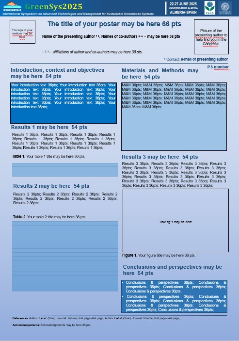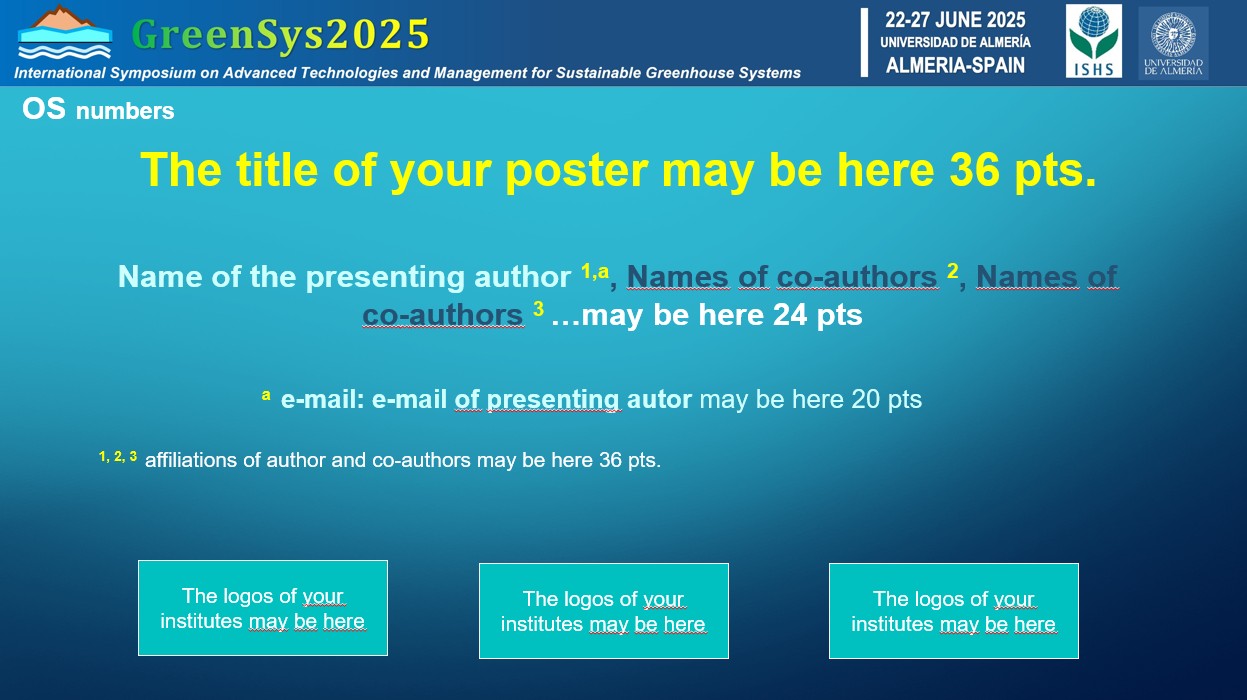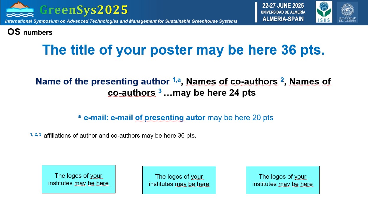 The following information is important for researchers who will have to make an oral or poster presentation as it appears in the symposium program. The use of the symposium templates is not mandatory and the institutional templates of the authors' own organizations can also be used.