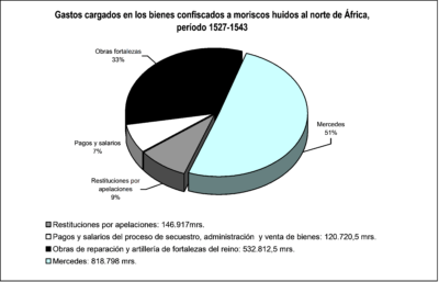 Título: Gastos cargados en los bienes confiscados a moriscos huidos al norte de África, período 1527-1543. Fuente: Elaboración Antonio Jiménez Estrella.
