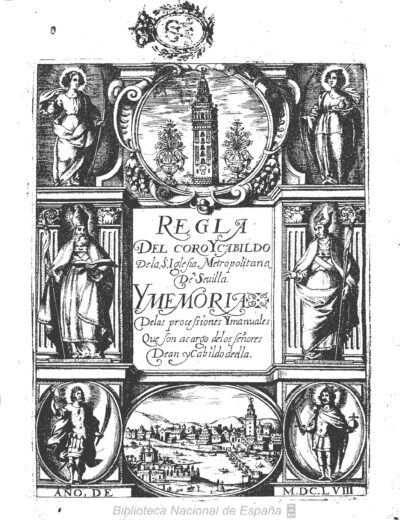 Título: Mendez, Juan. Portada de la obra “Regla del coro y cabildo de la Iglesia Metropolitana de Sevilla”, 1658 Fuente: Biblioteca Nacional de España
