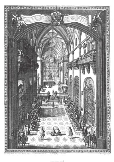 Título: “Juramento y homenaje de fidelidad que el reyno de Castilla y León hicieron al Rey N.S.D. Felipe V” (1701). Ilustración de “Sucesión del rey Don Felipe V a la Corona de España” (1704). Berterham, [...]