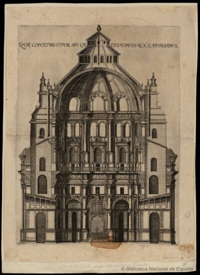 Título: "Quae construitur in çelis vivis ex lapidibus" Heylan, Francisco. Sección transversal de la Capilla Mayor de la Catedral de Granada. Fuente: Biblioteca Digital Hispánica. Biblioteca Nacional de España.