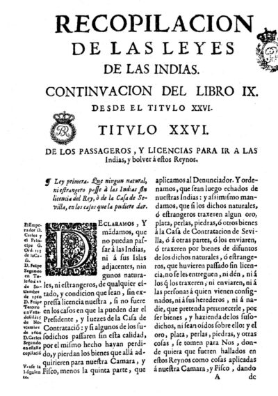Título: Página de la Recopilación de Leyes Indias, lib. IX, tit. 26,1680 Fuente: Biblioteca Virtual Miguel de Cervantes. www.cervantesvirtual.com