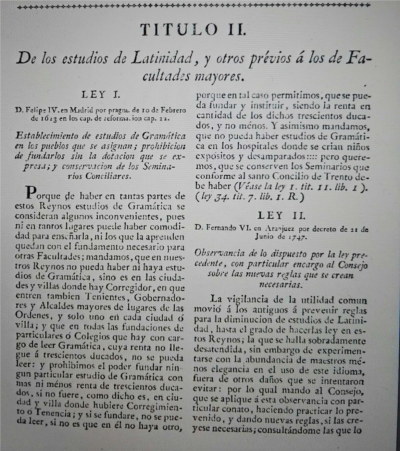 Título: Novísima Recopilación de las Leyes de España, libro 8º, Título 1º (1805) Fuente: Google books