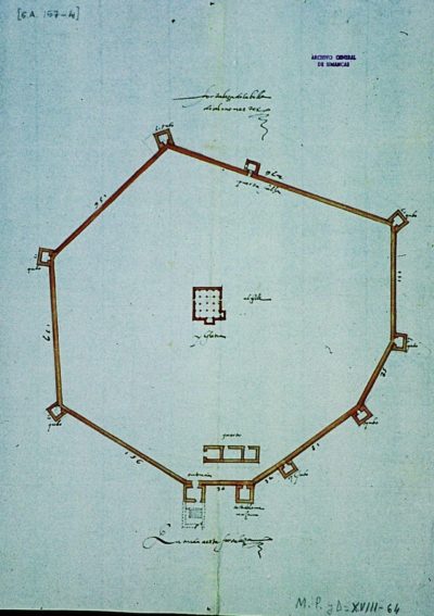 Título: Plano de la fortaleza de Almonaster la Real. Fuente: Archivo General de Simancas, Sección Guerra Antigua, M.P. y D. XVIII - 64.