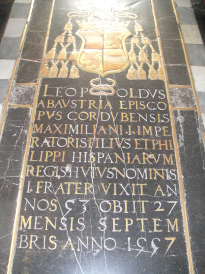 Título: Lápida polícroma de don Leopoldo de Austria en el crucero de la catedral de Córdoba con su escudo de armas. Fuente: Wikipedia Commons.