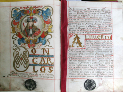 Título: Ejecutoria de Hidalguía de la Real Chancillería de Granada a favor de Bartolomé de Cabrera, vecino de Constantina, 1699. Fuente: Portal de Archivos de Andalucía.