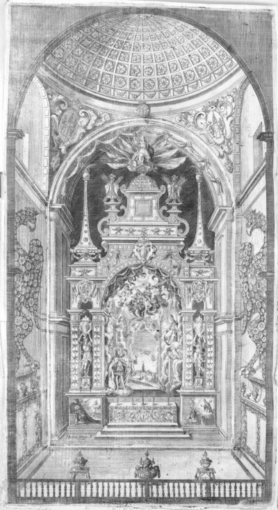 Título: Altares efímeros en la Catedral de Sevilla publicado en la obra Fiestas de la S. Iglesia Metropolitana, y Patriarcal de Sevilla al nuevo culto del señor rey S. Fernando…. publicada en Sevilla en 1672 [...]