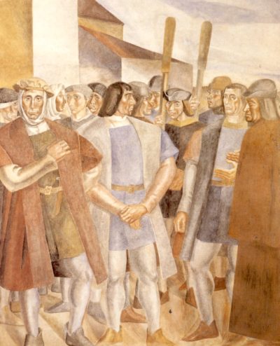 Título: Los “heroicos hijos de Palos y Moguer”, por Daniel Vázquez Díaz, 1929. Monasterio de la Rábida. Fuente: Diego Ropero-Regidor.