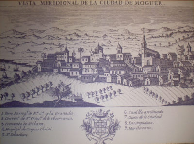 Título: Vista de Moguer por Espinalt y García, Atlante Español, 1795. Fuente: Dominio público.