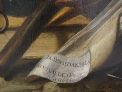 Título: Detalle con la firma del pintor en San Jerónimo penitente en su estudio, 1669. Museo de Bellas Artes de Sevilla Fuente: María de los Ángeles Fernández Valle.