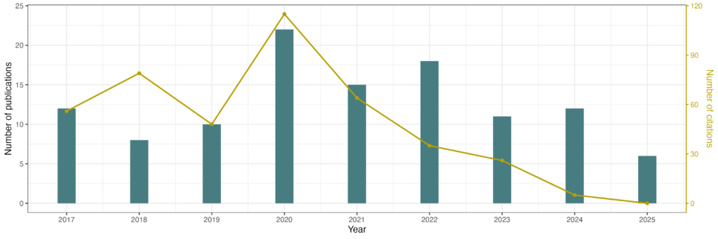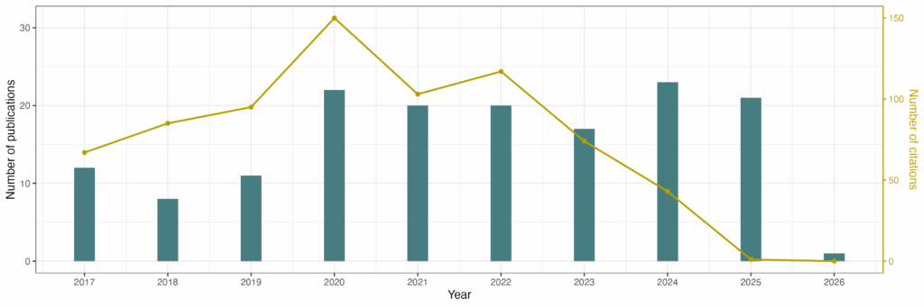 | 2023 | Arnaiz-Schmitz, C., Aguilera, P. A., Ropero, R. F., & Schmitz, M. F. (2023). Detecting social-ecological resilience thresholds of cultural landscapes along an urban–rural gradient: a methodological approach based on Bayesian Networks. Landscape Ecology, 38(12), 3589–3604. https://doi.org/10.1007/s10980-023-01732-9 | 7 | Q1 |