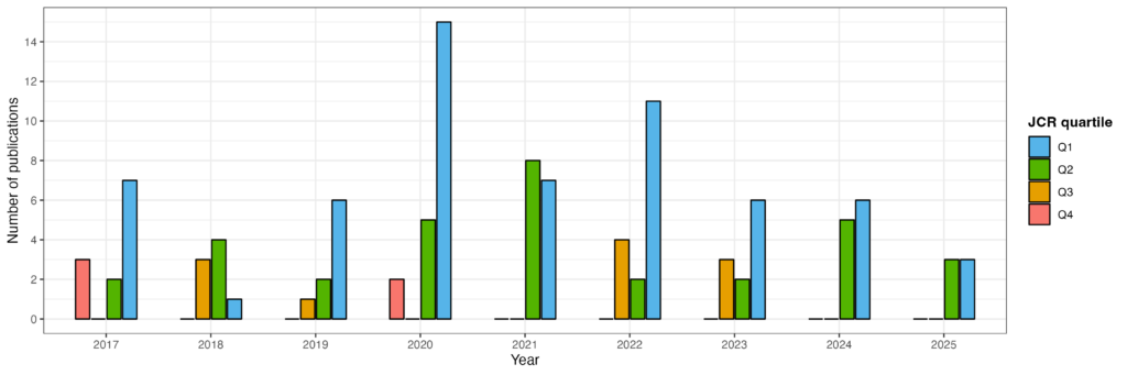 | 2025 | Molero-González, L., Trinidad-Segovia, J. E., Sánchez-Granero, M. Á., Clara-Rahola, J., & Puertas, A. M. (2025). Dynamic heterogeneities in stock markets. Physica A: Statistical Mechanics and Its Applications, 669, 130567. https://doi.org/10.1016/j.physa.2025.130567 | 0 | Q2 |