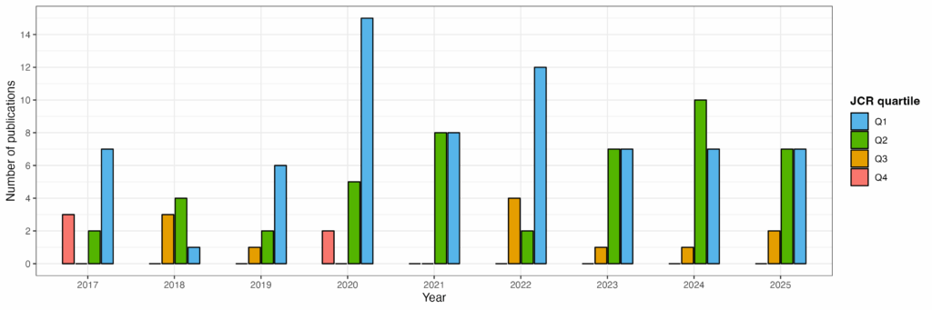 | 2017 | Gámez, M., López, I., Rodríguez, C., Varga, Z., & Garay, J. (2017). Observation and control in models of population genetics. Journal of the Franklin Institute, 354(16), 7359–7384. https://doi.org/10.1016/j.jfranklin.2017.08.053 | 4 | Q1 |