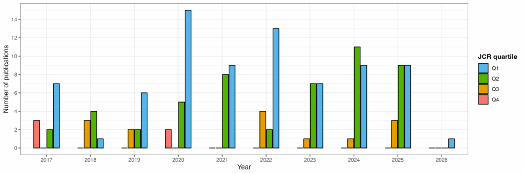 | 2025 | Cabañas, R., Maldonado, A. D., Morales, M., Aguilera, P. A., & Salmerón, A. (2025). Bayesian networks for causal analysis in socioecological systems. Ecological Informatics, 89, 103173. https://doi.org/10.1016/j.ecoinf.2025.103173 | 0 | Q1 |