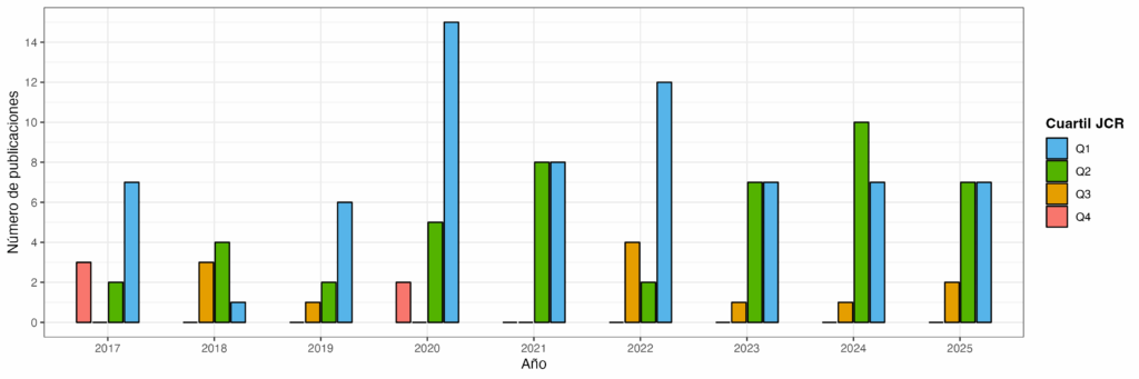 2024Marczuk-Rojas, J. P., Álamo-Sierra, A. M., Salmerón, A., Alcayde, A., Isanbaev, V., & Carretero-Paulet, L. (2024). Spatial and temporal characterization of the rich fraction of plastid DNA present in the nuclear genome of Moringa oleifera reveals unanticipated complexity in NUPTs´ formation. BMC Genomics, 25(1). https://doi.org/10.1186/s12864-024-09979-54Q2