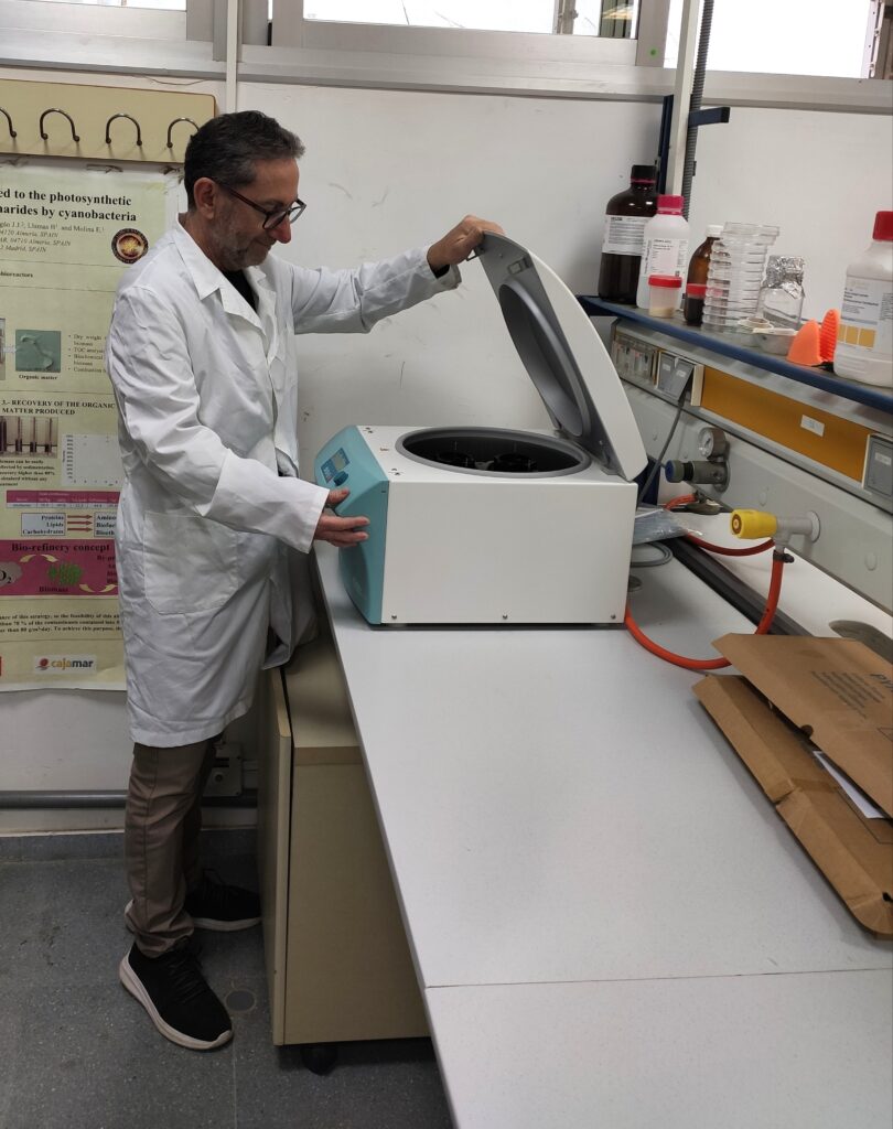 – Estudié Biología en Granada, pero aterricé aquí en Almería, a finales del siglo pasado, recién casado y siguiendo a mi mujer, que había aprobado unas oposiciones de administrativo en la UAL. Algunos días la acompañaba a su puesto de trabajo, el Vicerrectorado de Investigación, donde gestionaba los Grupos y proyectos de investigación. En muchos de estos proyectos aparecía la palabra “Microalgas”, y recuerdo que me decía: “Esto te tiene que gustar”. Una forma de llegar a formar parte de la plantilla de la UAL eran unas oposiciones para entrar en la bolsa de personal de limpieza. Ella me animó a presentarme, y tuve la fortuna de aprobar. La mayoría de los que entramos éramos titulados universitarios y en poco tiempo fuimos ocupando otros puestos. A mí me atraían los laboratorios y terminé en Ingeniería Química, en el 2002.