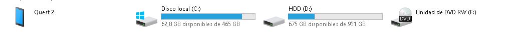 En nuestro ordenador aparecerá ya la unidad Quest 2 accesible como ventana de archivos.