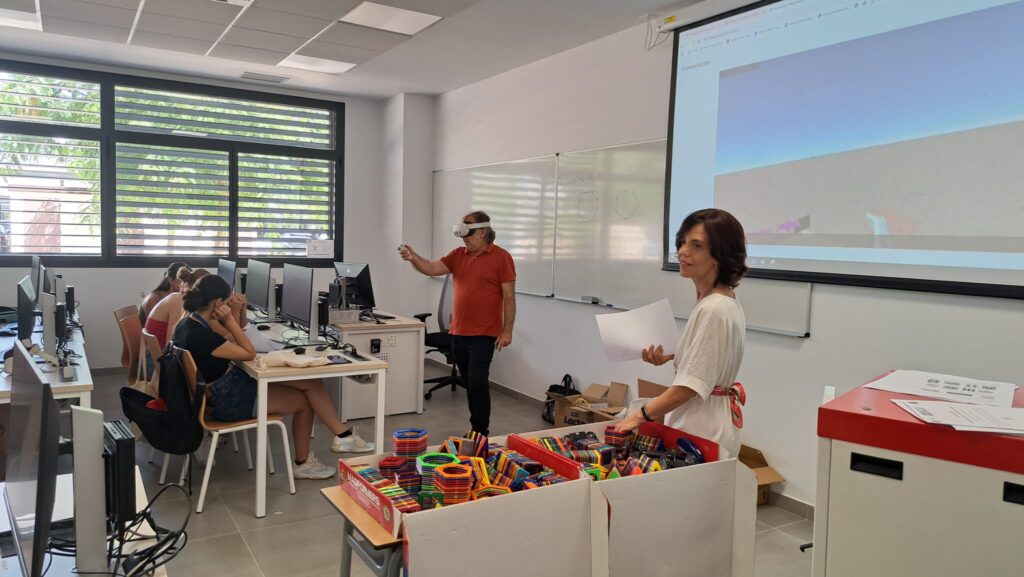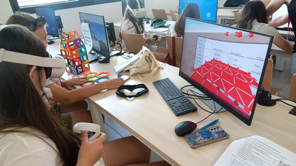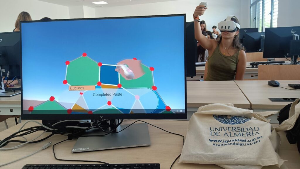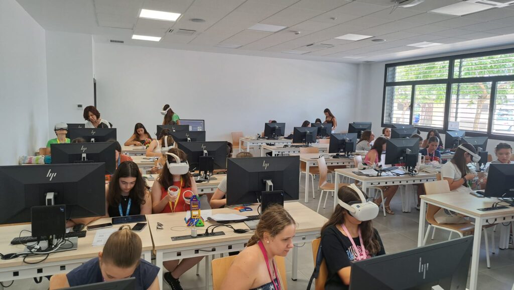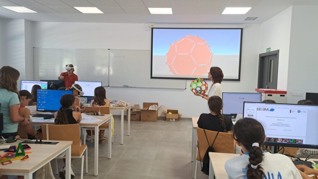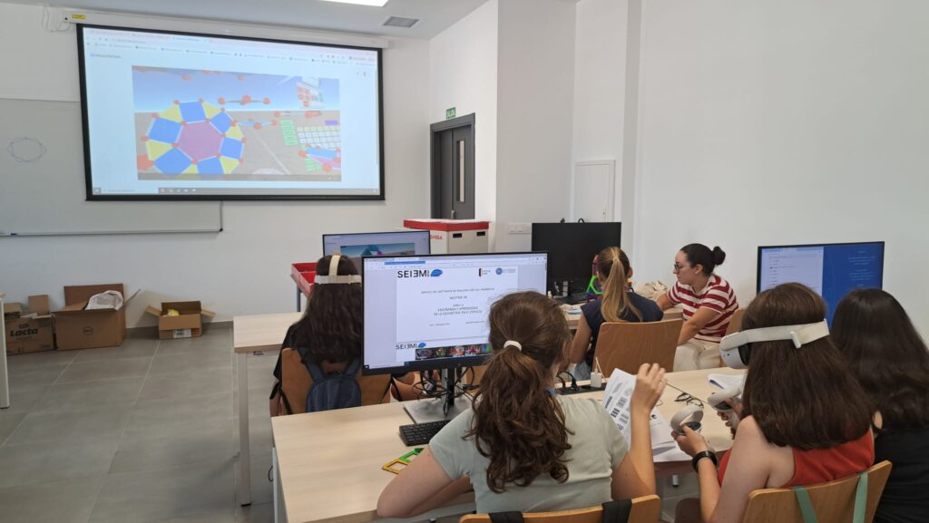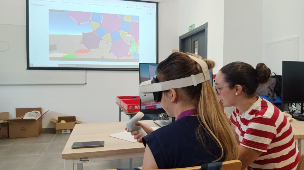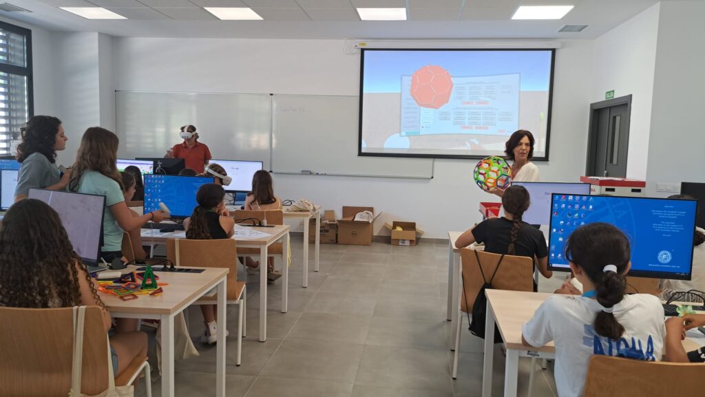 El pasado 9 de julio, 90 chicas de la provincia disfrutaron en el VI Campus Tecnológico para chicas, con la realidad virtual y impartimos un taller sobre “Teselados y poliedros (semi)regulares en Neotrie”, a cargo de José L. Rodríguez, Isabel Mª Romero y Mª Mar García.